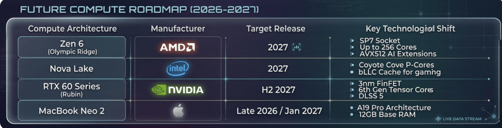 The desktop processor market is bracing for a monumental clash between AMD’s Zen 6 architecture (codenamed “Olympic Ridge”) and Intel’s Nova Lake. Both architectures are targeted for release in 2027, reflecting extended development cycles necessitated by the complexity of modern semiconductor design.